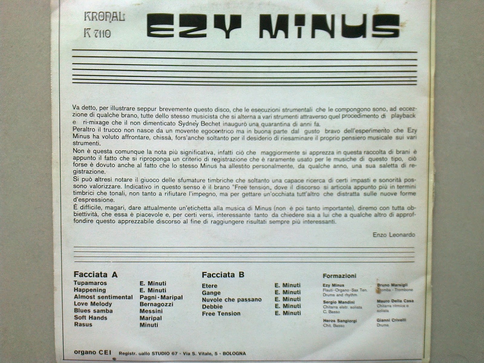 Flute, Organ, Tenor Saxophone, Drums and Rhythm, Composer - Ezy Minus (Enzo Minuti)