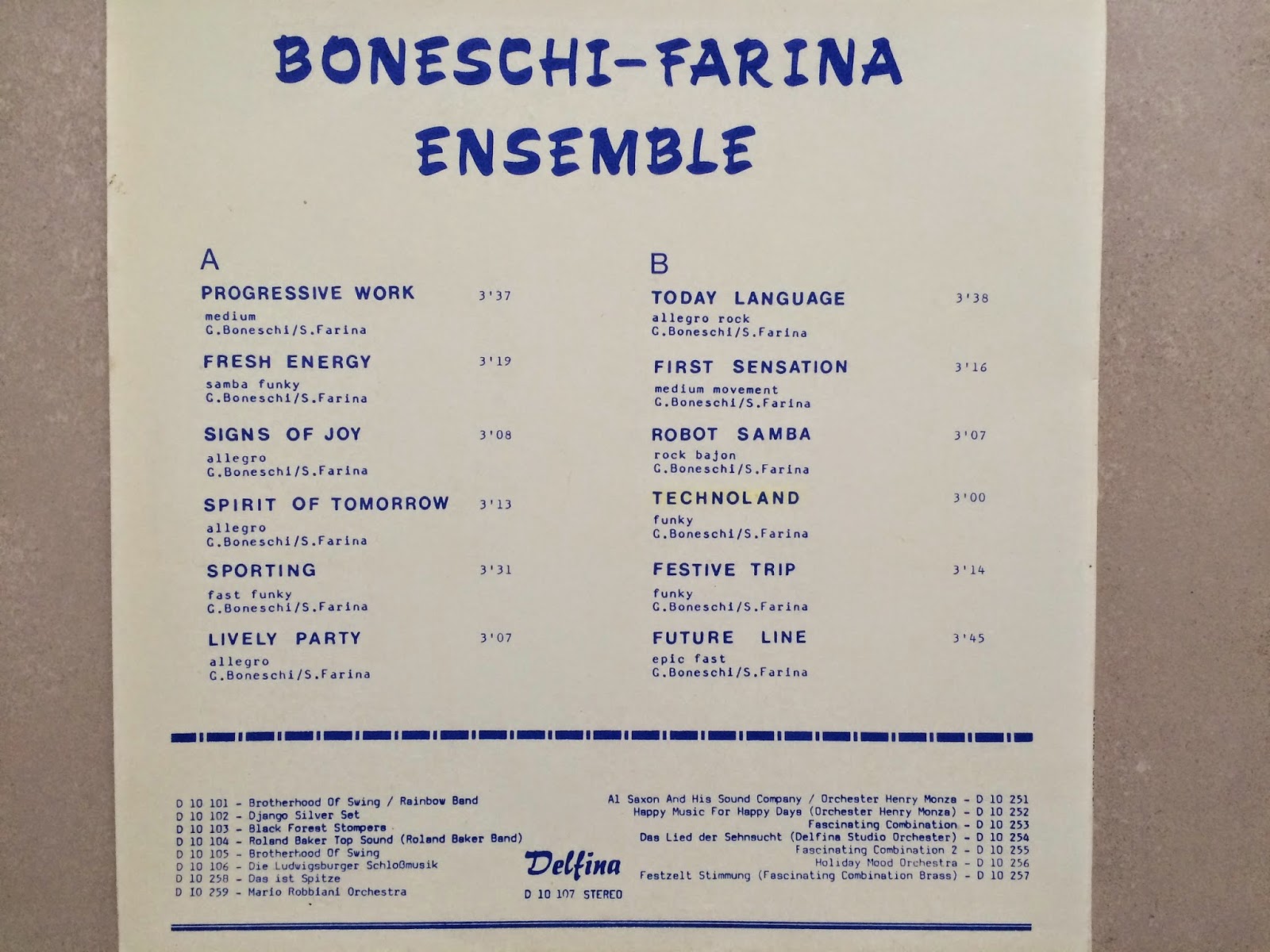$ 0 0 Boneschi-Farina Ensemble – Boneschi-Farina EnsembleLP Delfina [D 10 107] (19xx)Performer, Composer - Giampiero Boneschi, Sergio Farina