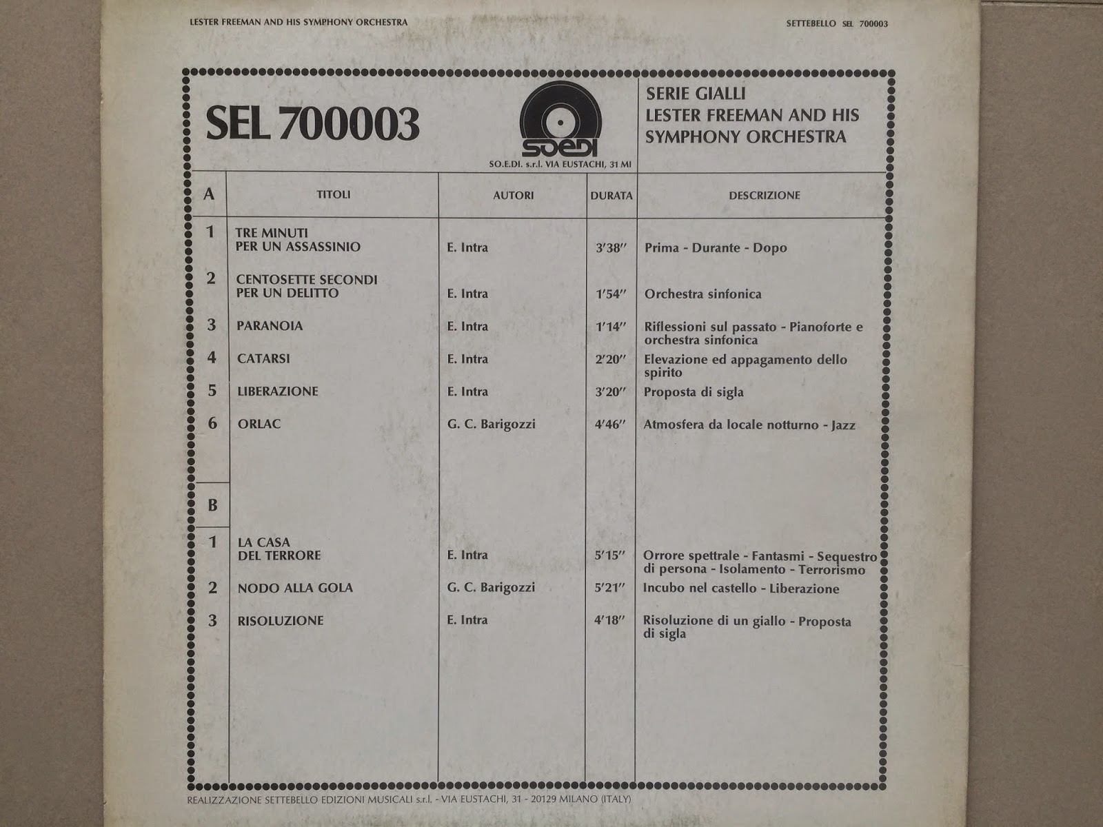 $ 0 0 Lester Freeman And His Symphony Orchestra – Lester Freeman And His Symphony OrchestraLP Soedi s.r.l. / Ediz. Settebello Serie Gialli [SEL 700003] (1981)Performer, Composer, Director - Enrico Intra, Giancarlo BarigozziBuy it here